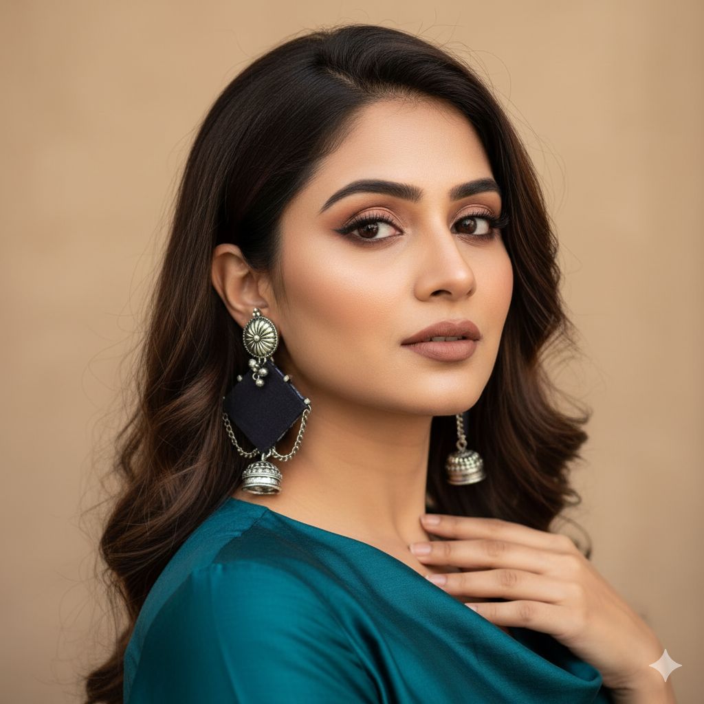 A chic and modern take on traditional jhumkas, these earrings feature a sleek, rectangular design accented with a classic bell charm for a touch of elegance.