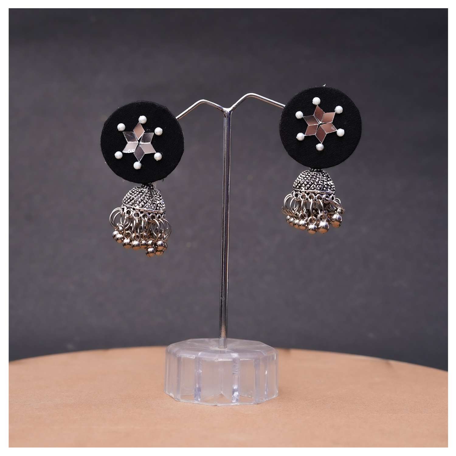 A graceful blend of traditional oxidized silver and a sleek black center piece, perfect for adding a touch of classic elegance to any look.